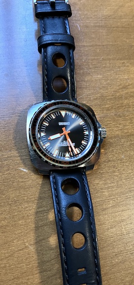 This Desk Diver 1 is like a restomod car! Its like taking a ’74 Vega body and swapping out its aluminum four-cylinder engine for a modern V-6, adding LED lights hi-tech paint, wheels and tires. Its basically an old, unused, inexpensive case with a sweet new movement from a class above, given a custom dial, new crystal and new strap. its a watch that never existed before and will never again. I’ve always been squeamish about modified watches like Seiko Mods. It makes me uncomfortable knowing a watch is not a “certified” original design, corrupted. My categorizing brain says, “wait, you can’t do that!” It is what it is and you can’t make it something it isn’t! Collectors hate Frankensteins. But, that is a dumb mindset when you consider we modify almost everything we get in some way, to make it our own. We change straps right away. We replace parts to keep watches running.