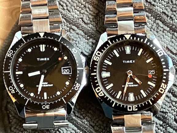 This is arbitrary but it gives me a framework to discuss a variety of Timex watches. I don’t want to get technical here. Many consider 100m to be a capable diving watch. We could further consider recreational diving versus professional diving, but I don’t want to go there. For example; consider that the 1958 Zodiac Seawolf, a dive watch, was rated at 100m WR. For myself, I would not be comfortable swimming for long with any watch less than 100m WR. I would take a 50M watch for a quick dunk. Both of these situations, of course, depend on age and state of repair of individual watch.