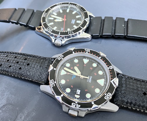 I’ve been putting this off. This post is not so much the result of something I am excited about as it is an obligation. I feel like I need to continue to sort out in my mind the background watches from recent decades that have led to today’s Timex divers. My Part 1, though tedious at times, came to me easier than this Part 2 is shaping up. I had been collecting and researching Timex dive-styles from the late ’60s to the early ’90s already. However, the products from about 1992-2015 have not been on my radar, as they say.