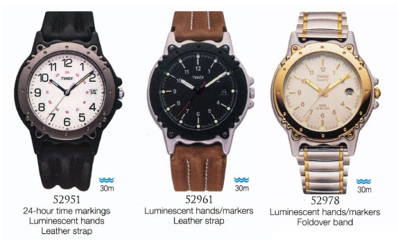 Timex, by the mid ’80s, had started to get out of electronics, photography and computers and refocus on watches. Their biggest sellers were the Ironman sports digital watches. If we look at the 1990 Timex catalog, there are only 5 or 6 mechanical styles each, in men’s and women’s lines. A new Camper was available with new case and quartz movement, even though the classic mechanical was still hanging on.